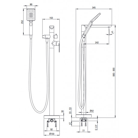Deante > Fittings/taps > Freestanding bathtub mixer taps > Alpinia > Bath tap single lever freestanding with shower set, Deante Alpina - nero (black mat)